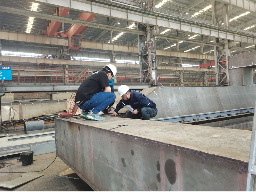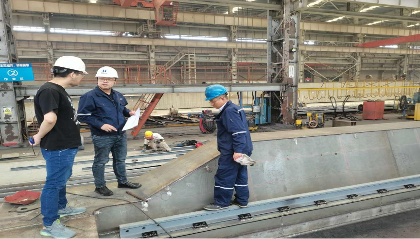 2021年,莊巍同志發(fā)現(xiàn)原先運用在陸豐900t固定式門座機上的工藝還可以改進,于是在反復地試驗和不懈地努力下,將改進工藝運用到三澳650t項目中,解決了廠內(nèi)吊裝設(shè)備能力不足且避免請大型起吊設(shè)備花費大額費用的問題。同年公司接單的德龍5037門座機項目在海重公司制作,由于該類型也是海重公司第一次制作,門架門腿結(jié)構(gòu)特殊,正常制作無法滿足圖紙要求,經(jīng)過一系列制作樣品驗證,且在圖紙視圖存在缺陷和無檢驗基準情況下,他卻始終堅信“沒有完不成的項目”,在經(jīng)過不斷的實踐后,發(fā)現(xiàn)可以通過放樣設(shè)計基準靠板可以解決問題,最終讓制作班組快速順利地完成了制作任務(wù)。