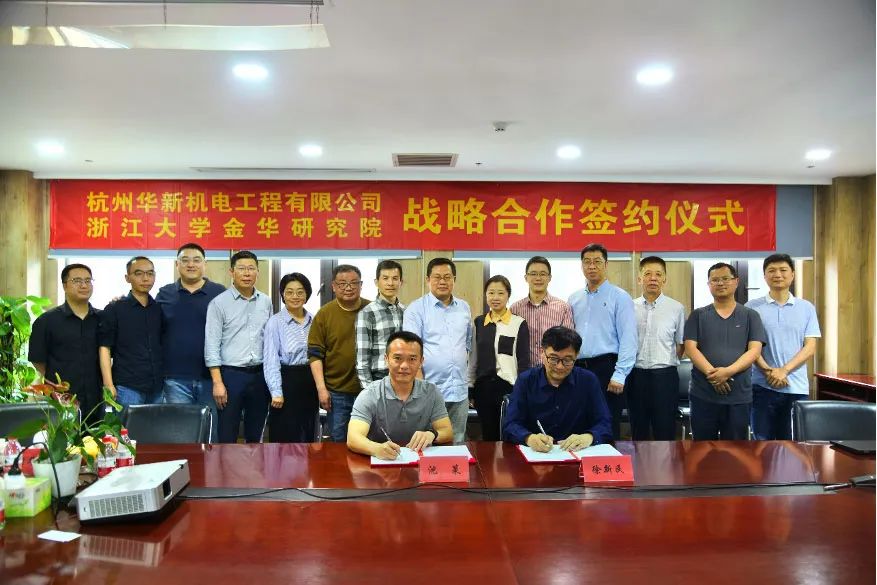 在嘉賓們的共同見證下,公司副總經(jīng)理沈策與浙大金華院常務(wù)副院長徐新民共同簽署了《杭州華新機(jī)電工程有限公司-浙江大學(xué)金華研究院戰(zhàn)略合作協(xié)議》。