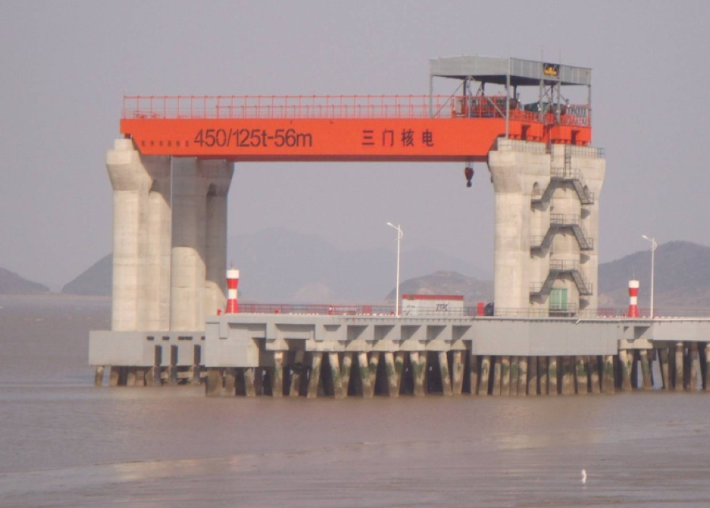 公司設(shè)計(jì)制造的所有核電廠配套用橋門(mén)機(jī)、吊車(chē)系消化吸收國(guó)內(nèi)外先進(jìn)技術(shù),結(jié)合我公司常規(guī)產(chǎn)品的成熟技術(shù),綜合核電產(chǎn)品更高的安全可靠性要求,遵照GB/T3811-2008《起重機(jī)設(shè)計(jì)規(guī)范》、GB/T14405-2011《通用橋式起重機(jī)》、NB/T20234-2013《 核電廠專(zhuān)用起重機(jī)設(shè)計(jì)準(zhǔn)則》等標(biāo)準(zhǔn)開(kāi)發(fā)出的核電專(zhuān)用系列產(chǎn)品,技術(shù)成熟,安全可靠,檢修便利,特別適合核電廠各個(gè)廠房?jī)?nèi)的設(shè)備的吊裝、搬運(yùn)就位工作。公司首臺(tái)臺(tái)橋機(jī)為2006年研發(fā)、2007年投入生產(chǎn)的巴基斯坦恰?,敽穗?5/20t吊車(chē),公司首臺(tái)臺(tái)碼頭固定吊為2008年向三門(mén)核電提供的2臺(tái)450/125t-56m固定式橋機(jī)。近14年的發(fā)展,已向國(guó)內(nèi)外眾多優(yōu)質(zhì)客戶(hù)提供近200臺(tái)核電吊車(chē)設(shè)備。目前制造過(guò)的跨度最大橋吊為450t-56m,起重量最大為900t固定吊。