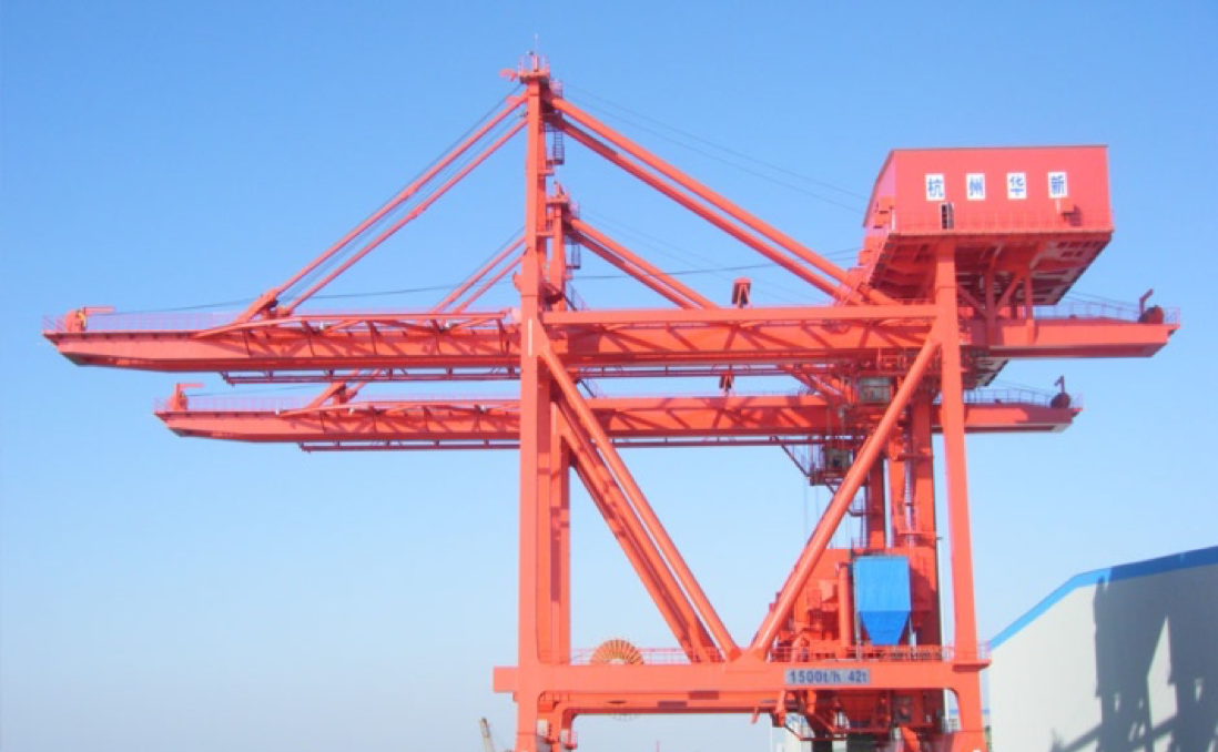 公司于1990年成功研發(fā)公司首臺臺四卷筒牽引式卸船機試驗機,在上海吳涇熱電廠投入使用,1993年1臺600t/h機房下置的四卷筒牽引式卸船機在華能威海電廠投入使用,至今已運行近30年,設備情況良好。經(jīng)過不斷地發(fā)展,不斷地積累經(jīng)驗,不斷地研發(fā)創(chuàng)新,華新機電生產(chǎn)制造的卸船機技術在不斷地升級,產(chǎn)品系列從200t/h~2400 t/h,目前生產(chǎn)制造過的生產(chǎn)率最大卸船機為馬來西來亞TJB2400t/h項目,具備設計制造2500~3500t/h卸船機的能力。產(chǎn)品廣泛應用于電力、冶金、建材、港口、散貨碼頭等行業(yè),在“一帶一路”的偉大創(chuàng)舉下,產(chǎn)品陸續(xù)出口印尼、馬來、菲律賓、新加坡、越南等東南亞國家以及西亞、中東、南美、非洲等地區(qū),產(chǎn)品遍及國內外。