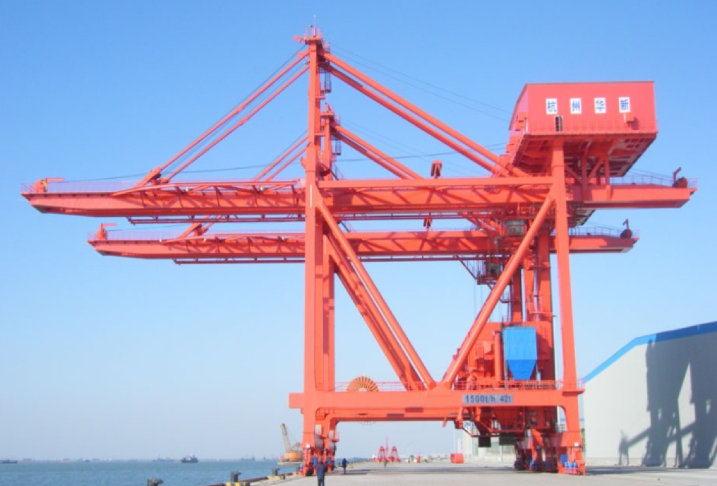 公司于1990年成功研發(fā)公司首臺臺四卷筒牽引式卸船機試驗機,在上海吳涇熱電廠投入使用,1993年1臺600t/h機房下置的四卷筒牽引式卸船機在華能威海電廠投入使用,至今已運行近30年,設備情況良好。經(jīng)過不斷地發(fā)展,不斷地積累經(jīng)驗,不斷地研發(fā)創(chuàng)新,華新機電生產(chǎn)制造的卸船機技術在不斷地升級,產(chǎn)品系列從200t/h~2400 t/h,目前生產(chǎn)制造過的生產(chǎn)率最大卸船機為馬來西來亞TJB2400t/h項目,具備設計制造2500~3500t/h卸船機的能力。產(chǎn)品廣泛應用于電力、冶金、建材、港口、散貨碼頭等行業(yè),在“一帶一路”的偉大創(chuàng)舉下,產(chǎn)品陸續(xù)出口印尼、馬來、菲律賓、新加坡、越南等東南亞國家以及西亞、中東、南美、非洲等地區(qū),產(chǎn)品遍及國內(nèi)外。