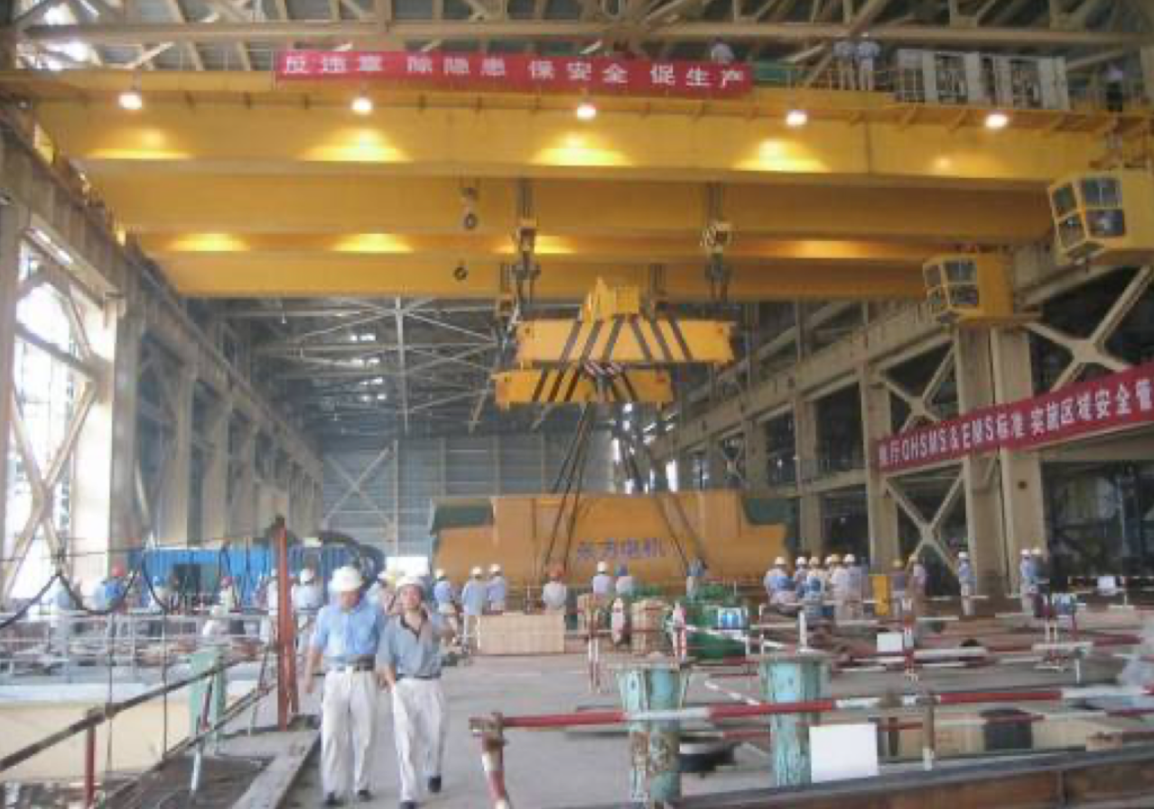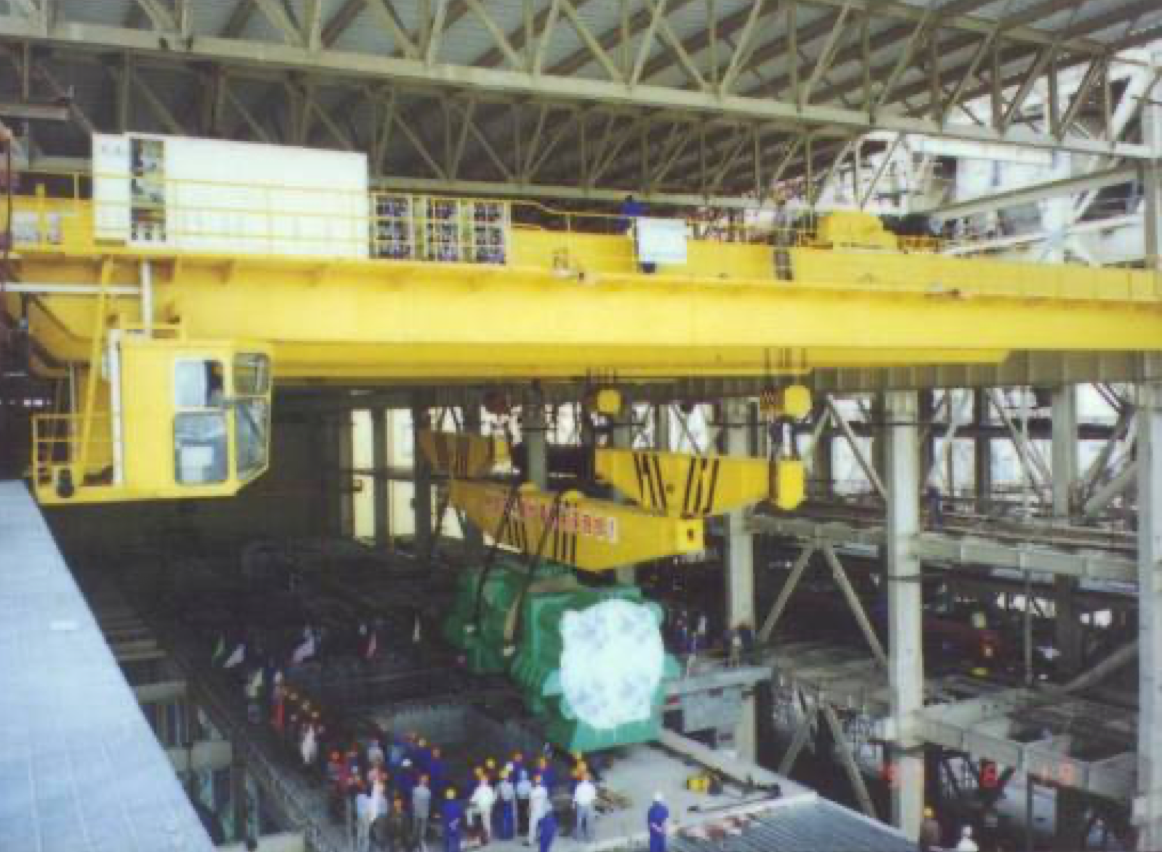 公司設計制造的所有橋機及門機的起升小車系消化吸收國外先進技術,結合我國當時的配套水平,綜合研究院多年的技術研制經(jīng)驗,遵照GB/T3811-2008《起重機設計規(guī)范》、GB/T14405-2011《通用橋式起重機》等標準,同時參照國外有關起重機標準及歐洲搬運協(xié)會主流橋式起重機機型研制而成,節(jié)能減排,經(jīng)濟環(huán)保,特別適合地下廠房、新型工廠及大噸位貴重物件的吊裝、搬運就位工作。公司首臺臺橋機為1990年研發(fā)、1992年投入生產(chǎn)的寧波北侖電廠80/20t橋式起重機,公司首臺臺門機為1994年向富春江發(fā)電廠提供的2×20t尾水門機。近三十年的發(fā)展,已向國內外眾多優(yōu)質客戶提供千余臺橋機和門機設備,是目前業(yè)內最先進、最成熟的低凈空小車結構。目前制造過的單小車橋機最大額定起重量為800t,雙小車橋機最大額定起重量為500t+500t,具備1500噸橋機的設計制造能力;制造過的門式起重機最大額定起重量為900t的造船龍門吊。